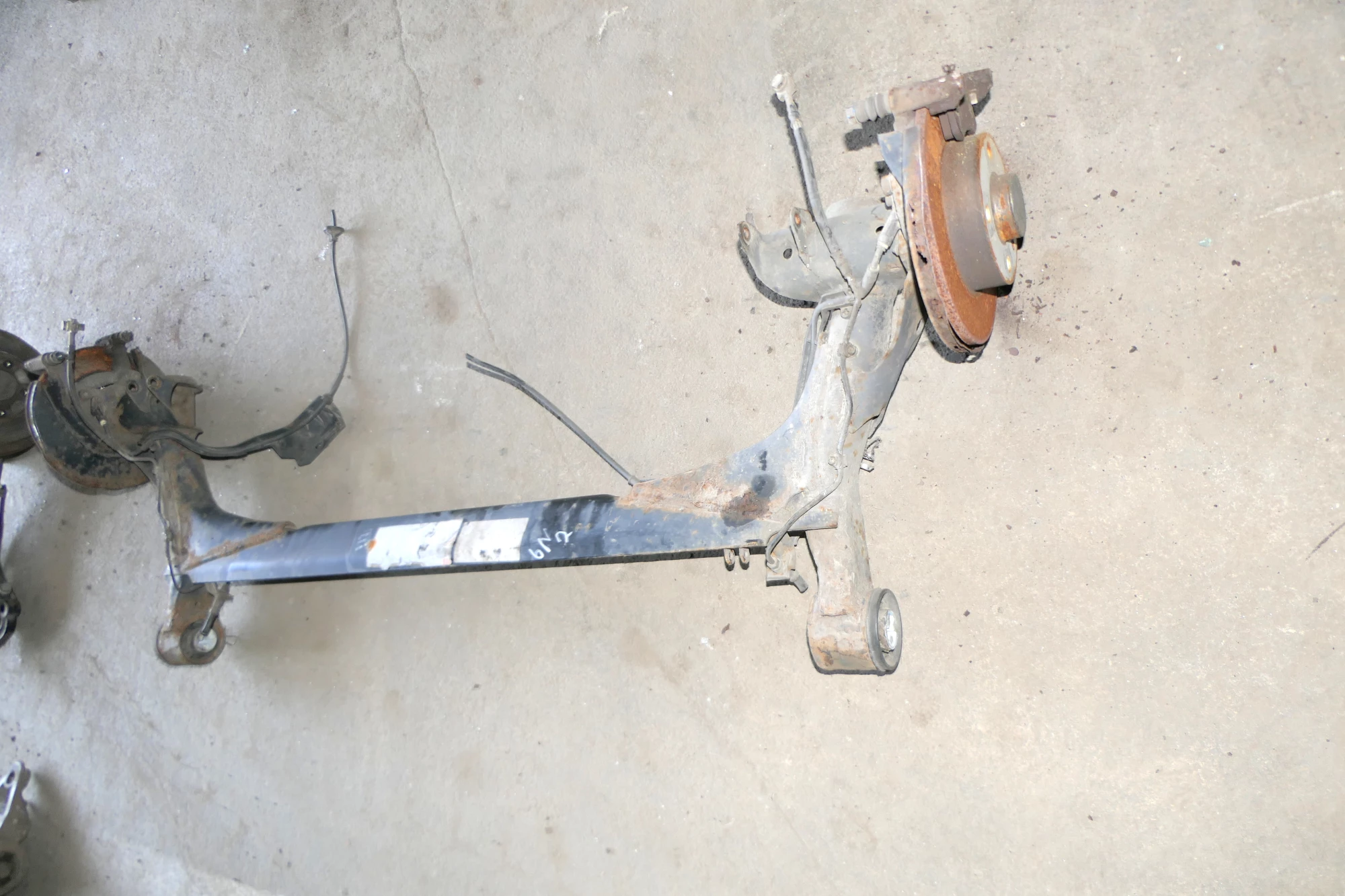 Ohne Halter! Ohne Sättel! Angeboten wird eine Achse hinten mit ABS aus einem VW Polo 6N2 Bj. 2000.
