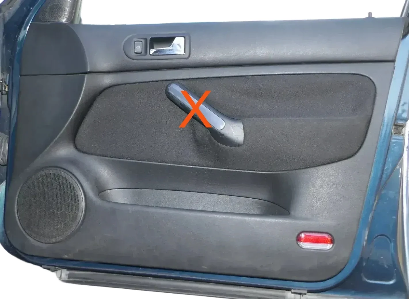 Ohne die Dekor Griff Abdeckung. Angeboten wird eine Türverkleidung aus einem Golf 4 Bj. 1998 4/5-Türer.