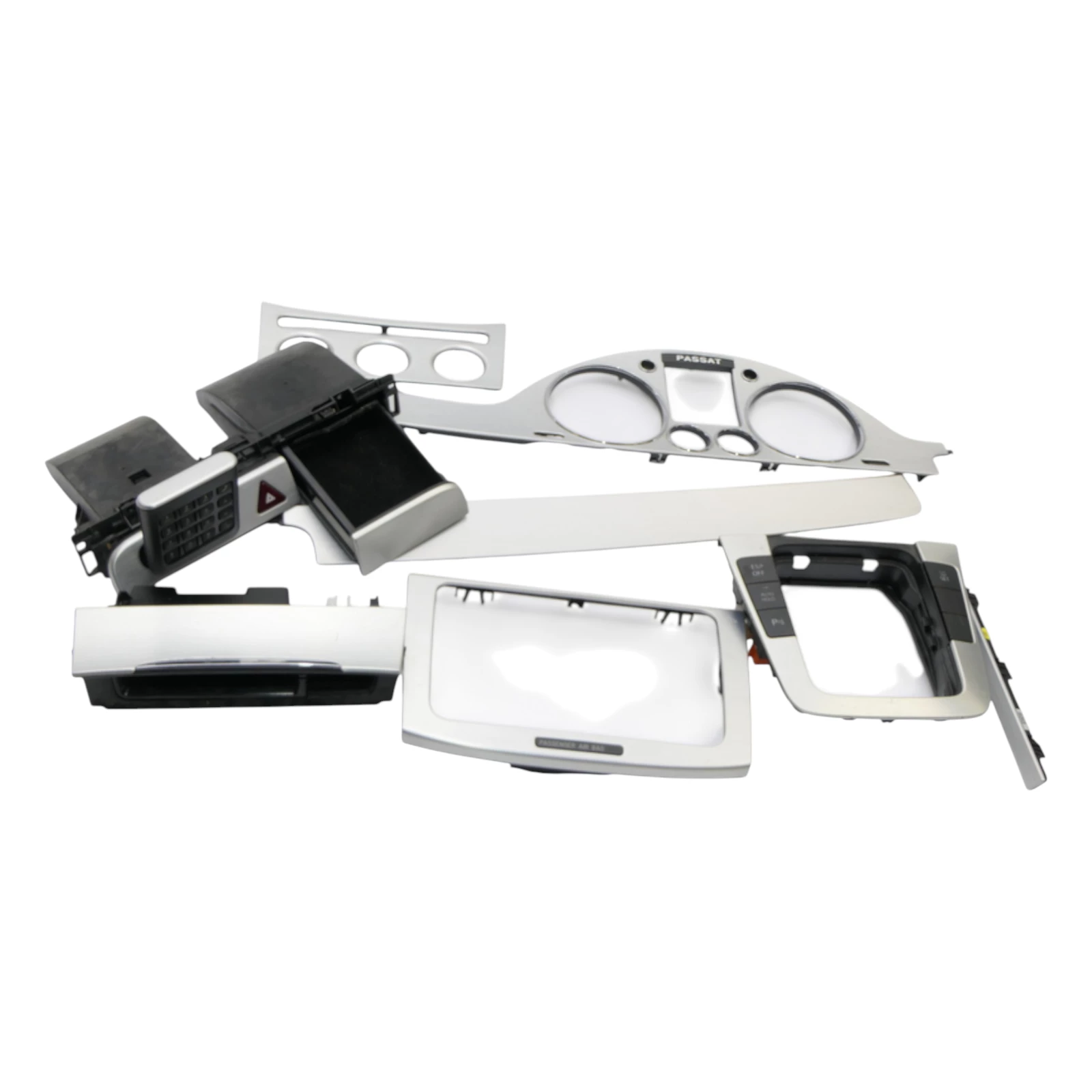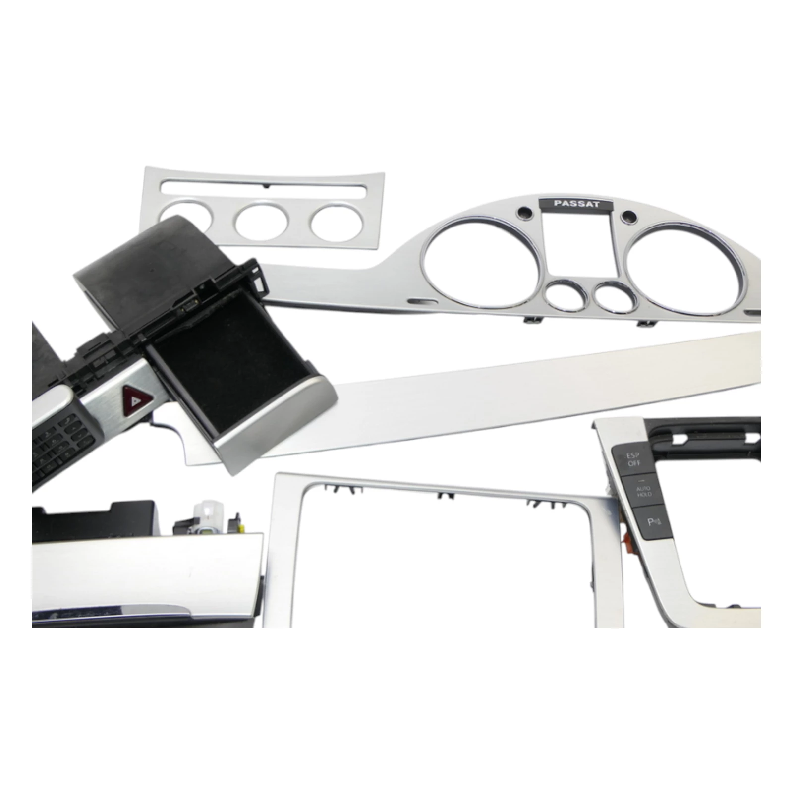 VW Passat 3C Mittelkonsole Verkleidung um Navi Klappe Abdeckung Dekor silber Pas